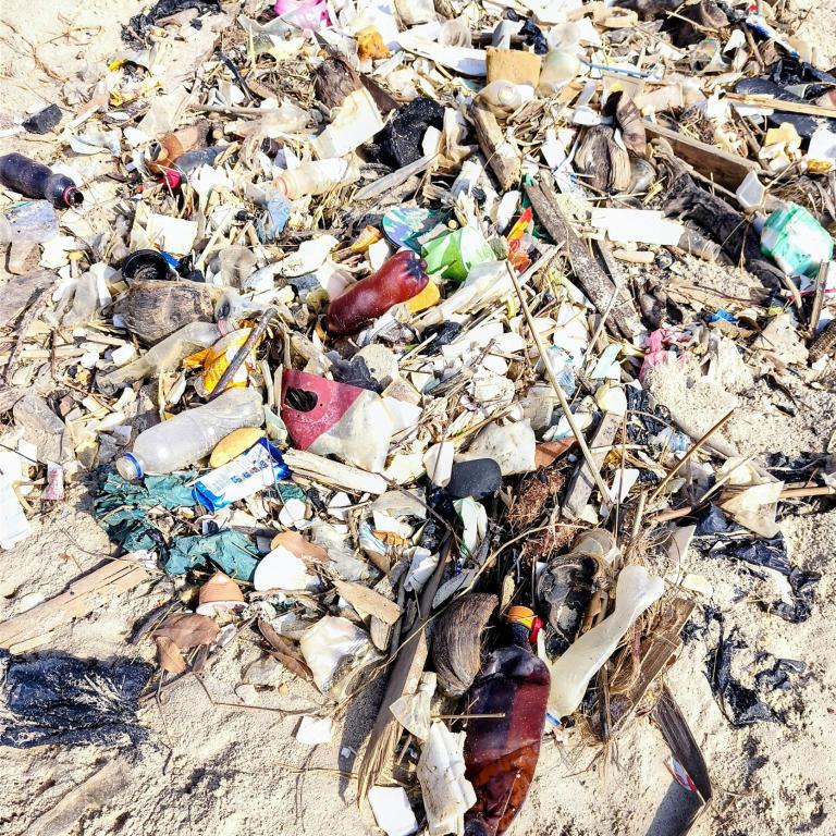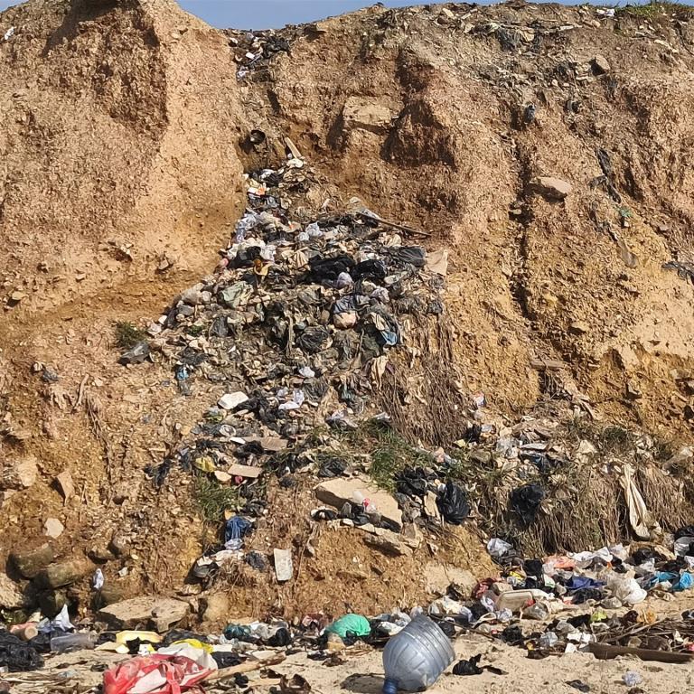 Schon der Blick von oben über die kleine Klippe hatte uns gewarnt: Der Strand sah schmutzig aus, übersät mit dem Zivilisationsmüll, den das Meer anspült. Aber wir wollten uns die Beine vertreten und stiegen hinab.