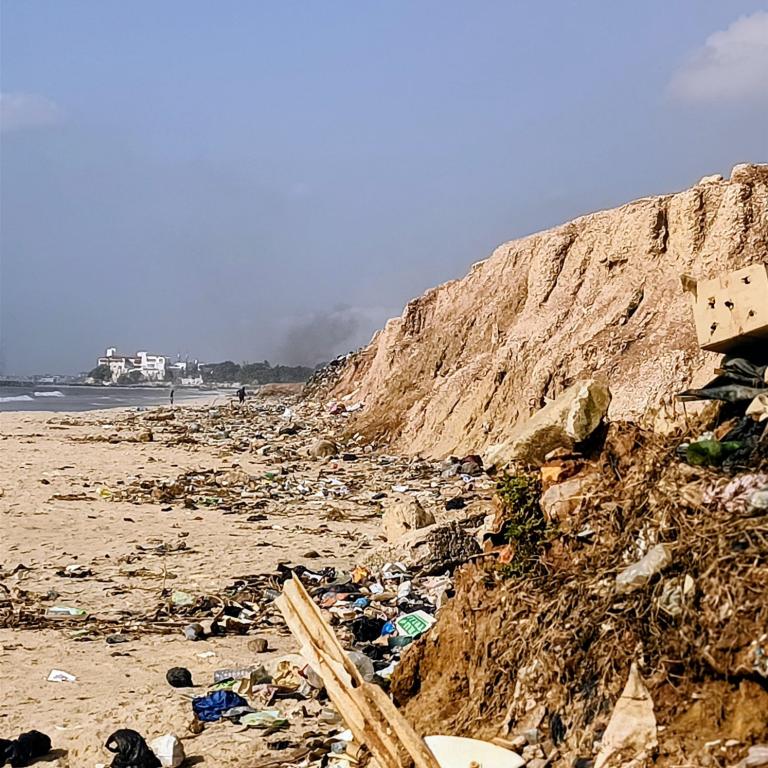 Weil es keine Müllverbrennungsanlagen gibt, landet dieser Abfall in den Kanälen. Der Regen spült ihn in die Korle-Lagune und von dort direkt in den Atlantik. Das Meer "spuckt" es dann wieder aus – genau hier, vor unsere Füße. Für die Fischer von Jamestown ist das eine Katastrophe: Sie ziehen oft Netze voller nasser, bleischwerer Jeans aus dem Wasser statt Fische.