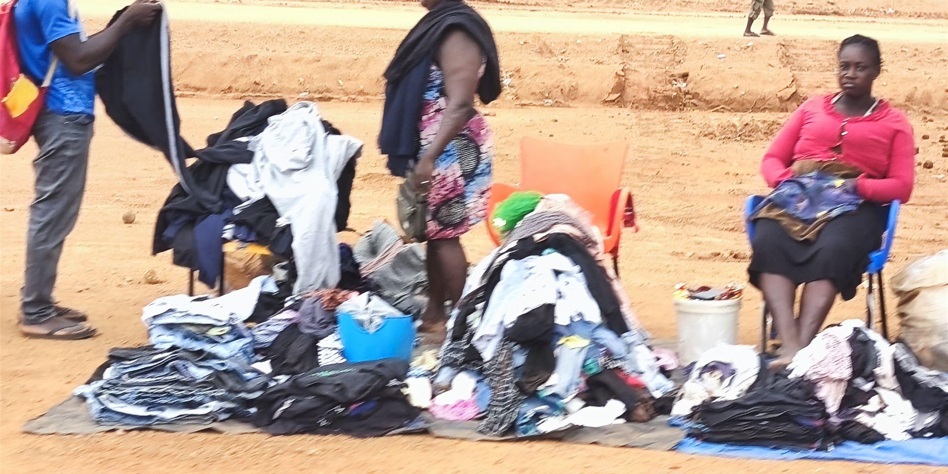 Woher kommt dieser Wahnsinn? Wir standen lange da und starrten auf diese Wand aus "Obroni Wawu" – so nennt man hier in Ghana die "Kleidung des toten weißen Mannes".