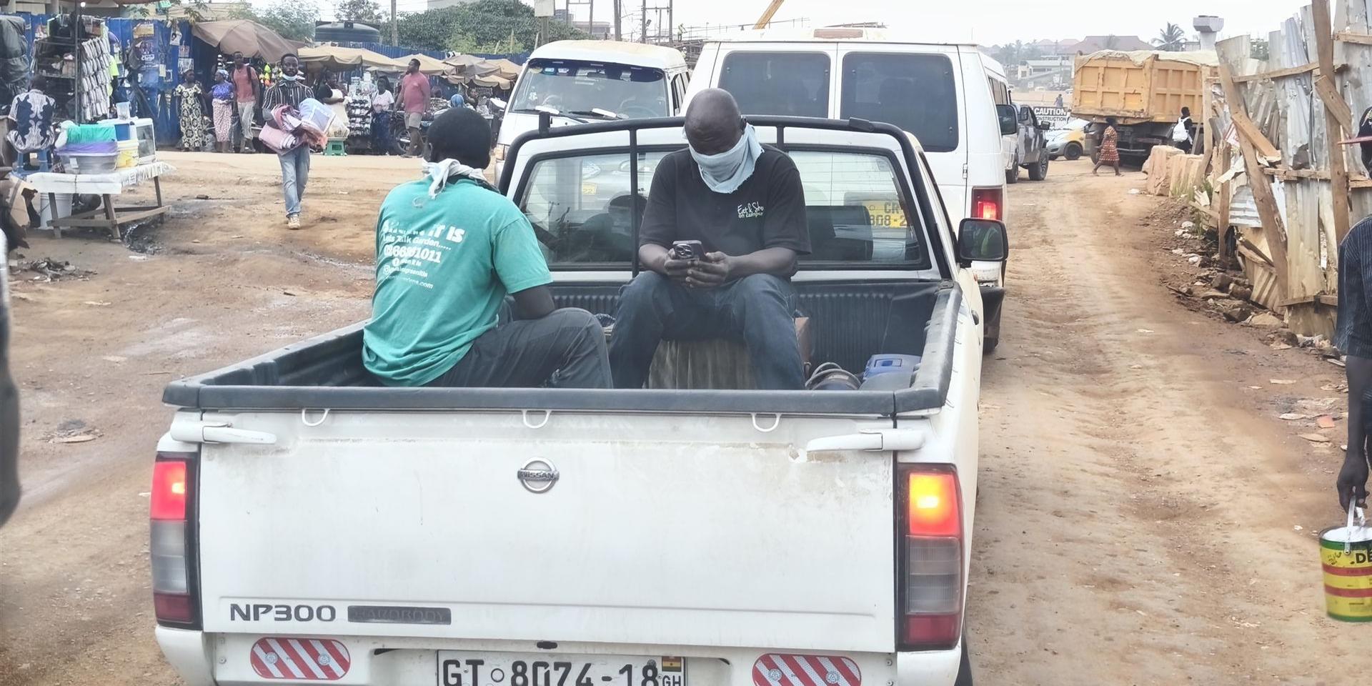 Endlich in Accra angekommen, war der Antrag schnell gestellt – am Dienstag dürfen wir das Visum abholen. Doch wo sollten wir bleiben? In der hektischen Innenstadt gab es für uns als "Overlander" mit unserem Fahrzeug absolut keine Möglichkeit, einen sicheren Standplatz für die Nacht zu finden. Also entschieden wir uns, die 9 Kilometer runter durch die Stadt an ihre Küste zu fahren, an den Strand von Accra.