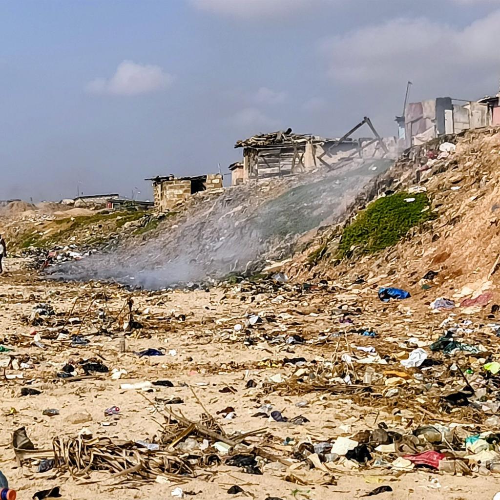 Weil es keine Müllverbrennungsanlagen gibt, landet dieser Abfall in den Kanälen. Der Regen spült ihn in die Korle-Lagune und von dort direkt in den Atlantik. Das Meer "spuckt" es dann wieder aus – genau hier, vor unsere Füße. Für die Fischer von Jamestown ist das eine Katastrophe: Sie ziehen oft Netze voller nasser, bleischwerer Jeans aus dem Wasser statt Fische.