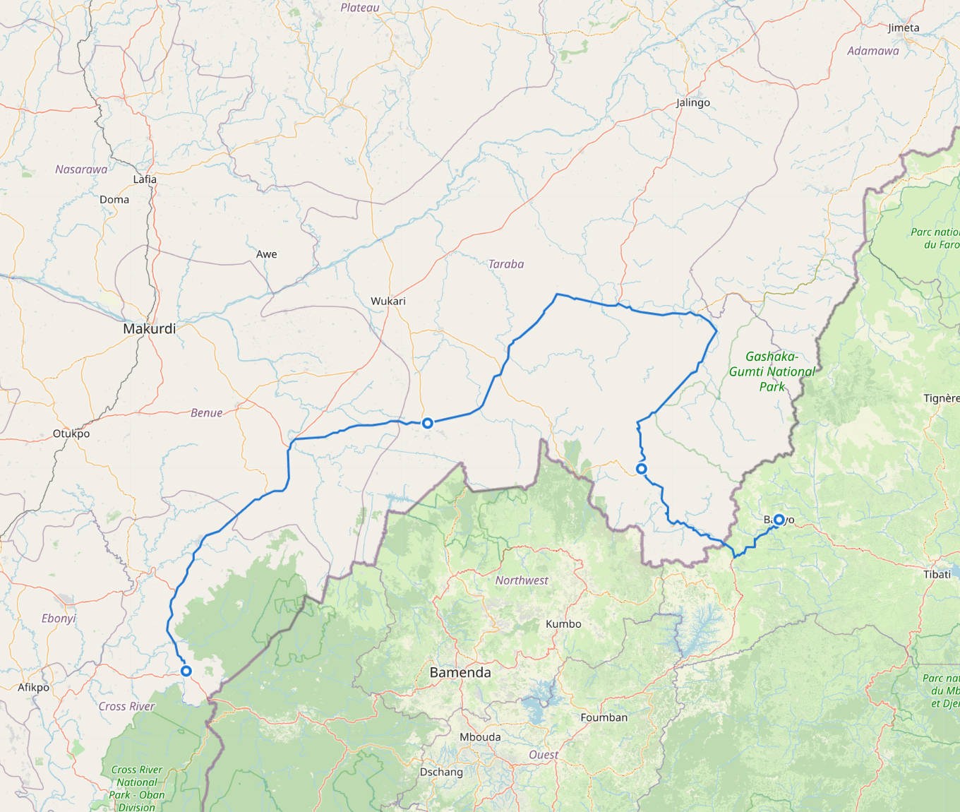Die Banyo-Route (Solo-Trip durchs Niemandsland): Viele empfehlen diesen Track über Gembu (Nigeria). Der eine argumentiert aus der Sicht des Bezwingers: „Geh solo, genieß die Einsamkeit, bezwing den Schlamm.“