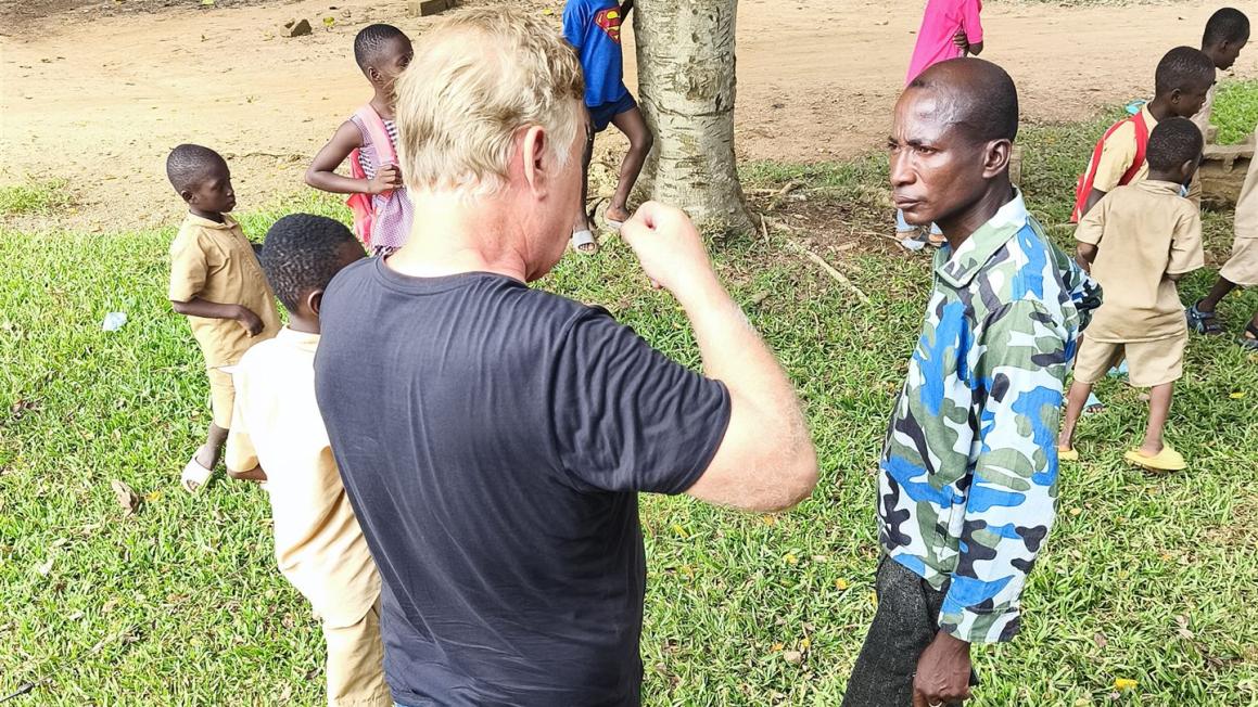 Dann kam ein schmächtiger Herr zu uns. Ich glaubte zunächst, dies sei der Pastor. Aber er kam mir durch seine Handlungen eher vor wie ein Clown und nicht wie ein Geistlicher. Sein Name war Alfred. Er erzählte, dass er in Belgien war, und somit glaubte ich dann doch, dass dies der Pastor sei. Ich plauderte mit ihm, wir machten Spass, so wie das üblich in Afrika ist, und fragte dann ganz schüchtern, ob wir hier übernachten könnten.
