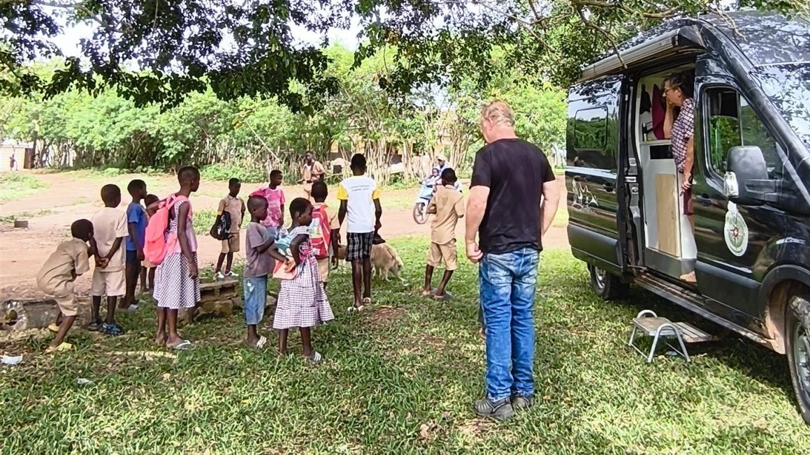 So kam ich an eine Baustelle und danach zur angegliederten Schule, um den Pastor zu finden. Die Information war, dass der Pastor im Dorf etwas erledigen müsse, aber sicher bald wiederkommen werde. Also ging ich zurück zu den Fahrzeugen, begleitet von der ganzen Kinderschar, die lachte und uns bestaunte.