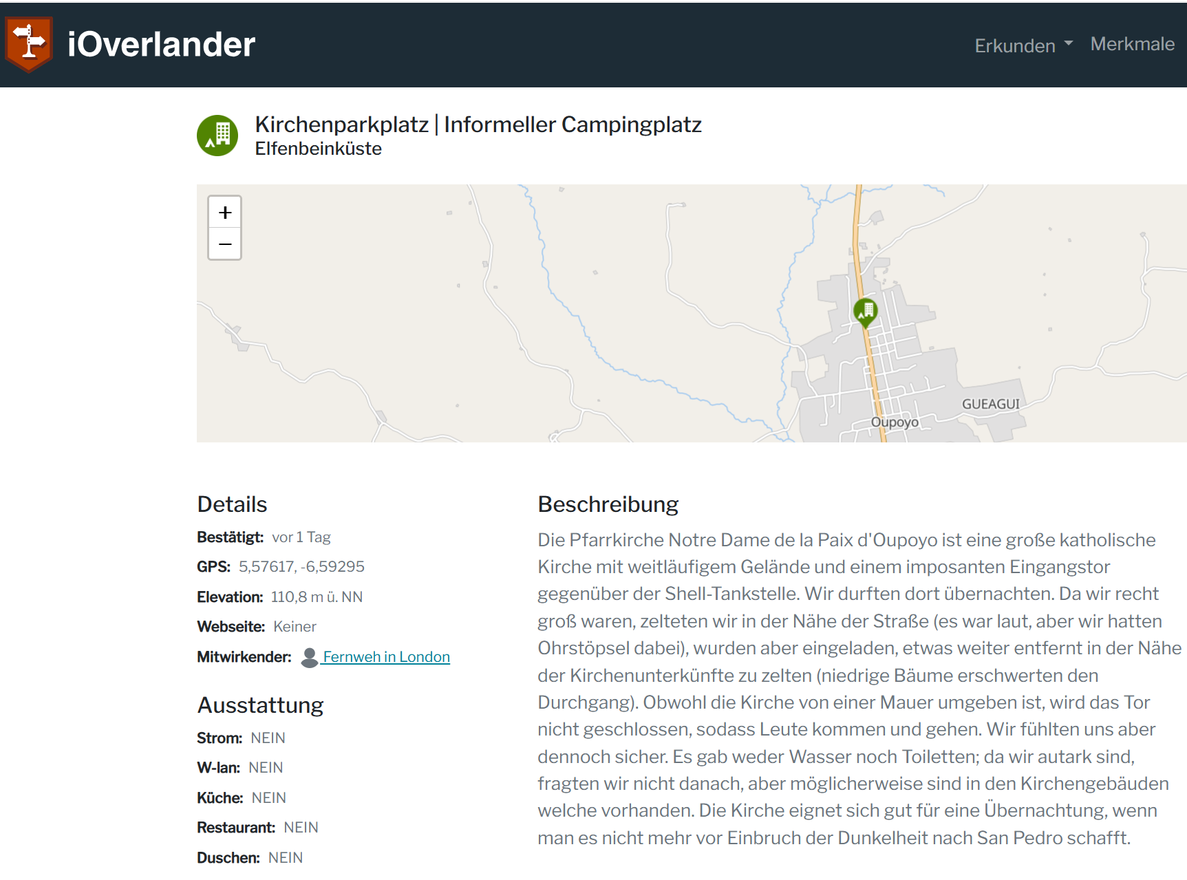 Diese App wird von den Reisenden selber unterhalten, und jeder, der so unterwegs ist, sollte seine Erfahrungen in die Kommentare hineinschreiben. Dies kann jedoch nur gut funktionieren, wenn möglichst viele ihre Erfahrungen teilen. Leider geht auch bei uns in der «Hitze des Gefechts» sehr oft der Gedanke verloren, sich doch in den Kommentaren zu verewigen. Die meisten schreiben ihre Erlebnisse in der App «Polarsteps» oder ähnlichem nieder und vergessen dann, diese Erfahrungen auch in die App iOverlander zu übertragen.
