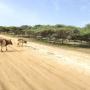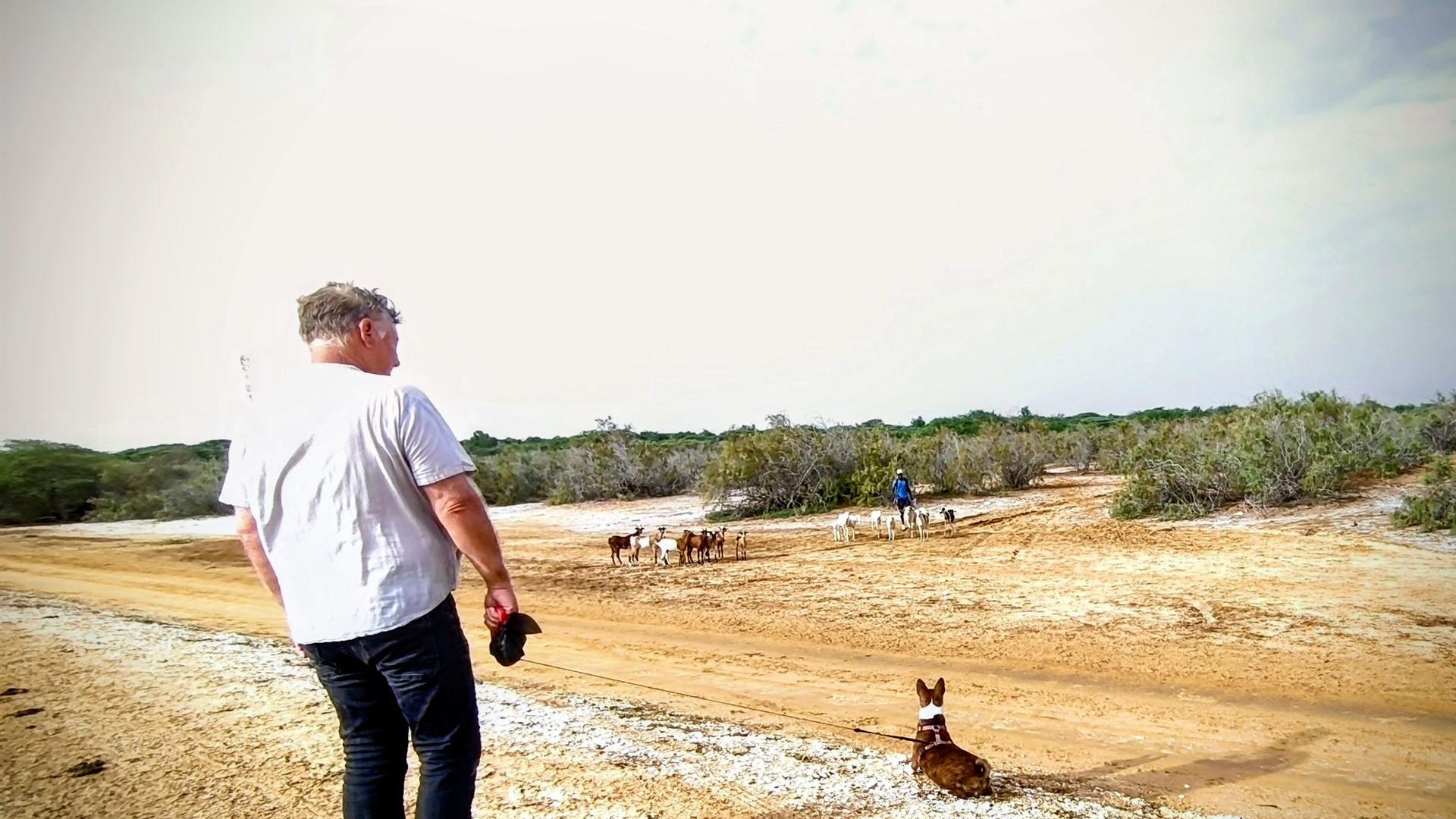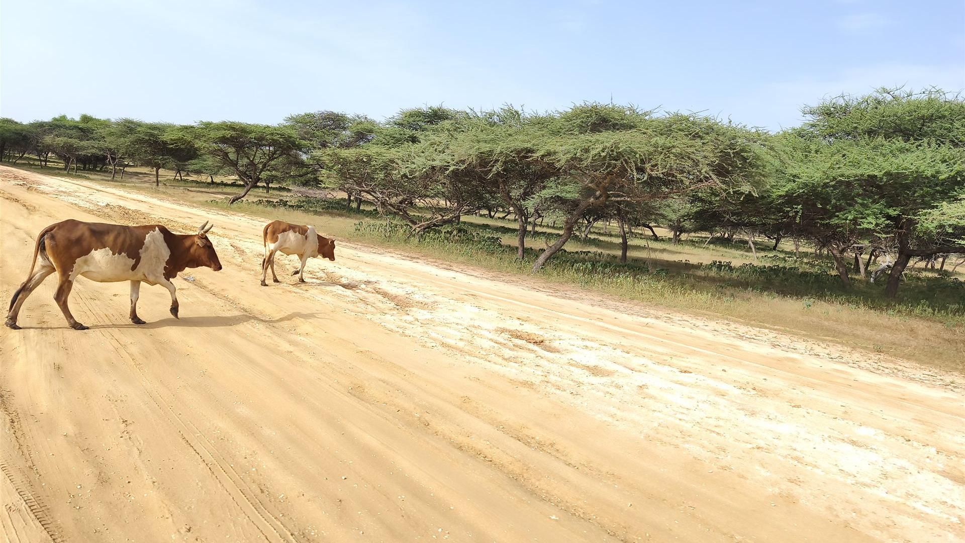 Während wir uns an diesem friedlichen Bild erfreuten, bekam Astrid plötzlich einen Schreck. Ein Tier überquerte gemächlich die sandige Piste vor ihr. Zuerst dachte sie an eine große Echse – doch das Wesen bewegte sich anders, schwerer, mit einem wippenden Schwanz.