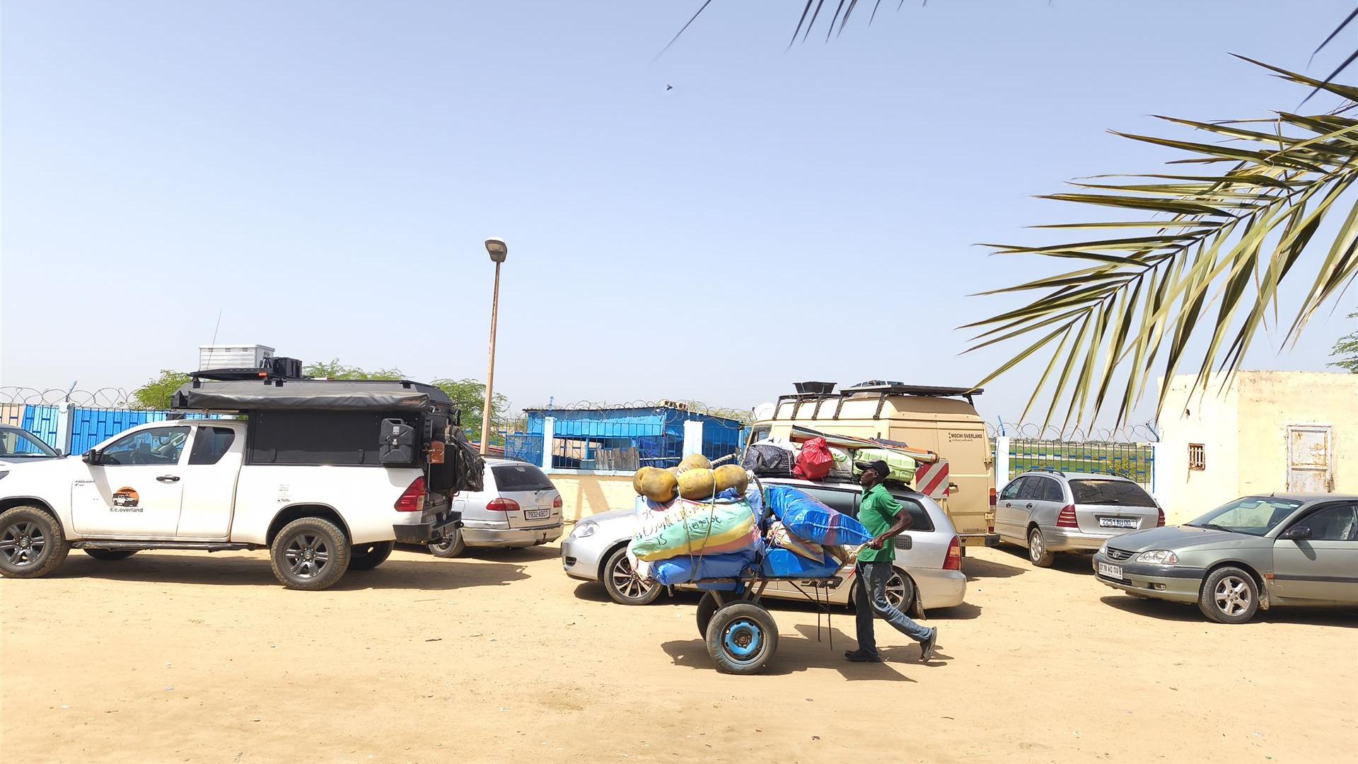Drei europäische Fahrzeuge standen bereits dort und warteten, ebenso wie wir, auf die Ausreise. Wir stellten uns in die Reihe, direkt vor ein kleines, fensterloses Büro, in dem schon lebhafte Diskussionen im Gange waren. Der Chef der Douane verlangte von jedem Fahrer 10 Euro für den Ausreisestempel. Das war nun wohl jener Moment, den man in Reiseforen als Vorhof der Hölle bezeichnet – der Versuch, ein bisschen „Extragehalt“ zu erwirtschaften. Doch die drei Europäer blieben standhaft und weigerten sich, zu zahlen – und ich bewunderte ihre Ruhe.