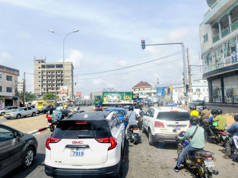 Der Polizeibeamte erklärte mir, dass er mein Nummernschild nicht lesen könne und uns deswegen aufgehalten hätte. Im ersten Moment war meine Vermutung, dass ich vielleicht das Nummernschild verloren habe, und stieg deswegen aus, um zu schauen, ob es noch da ist. Tatsächlich war es vorne noch ganz fest am Fahrzeug verankert. Nun meine Frage: Warum er es nicht lesen könne? Er erwiderte mir, dass es zu klein geschrieben sei und dass so kleine Nummernschilder in Togo nicht erlaubt sind.