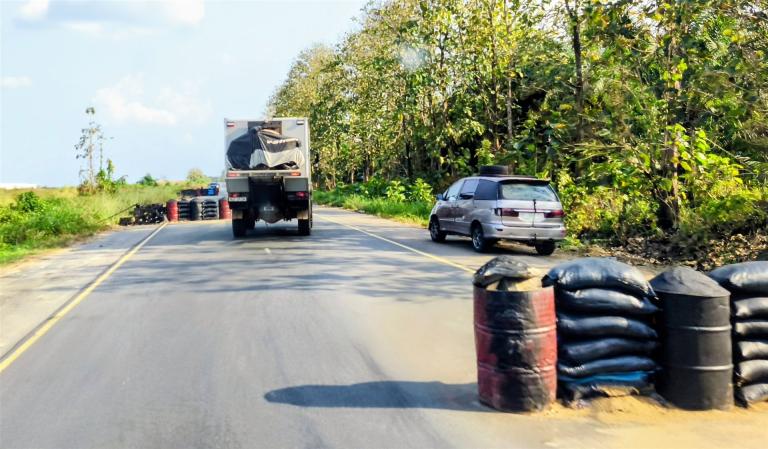 Nun kam der zweite Polizeibeamte dazu und erklärte, dass er ja nur nach einem Geschenk gefragt habe und nicht nach Geld. Ich sagte den beiden, ein Geschenk sei dasselbe wie Geld und wir taxieren das als einen Versuch, die Korruption zu umgehen, indem mir unter Vorwand ein Mangel am Auto aufgezeigt wird.