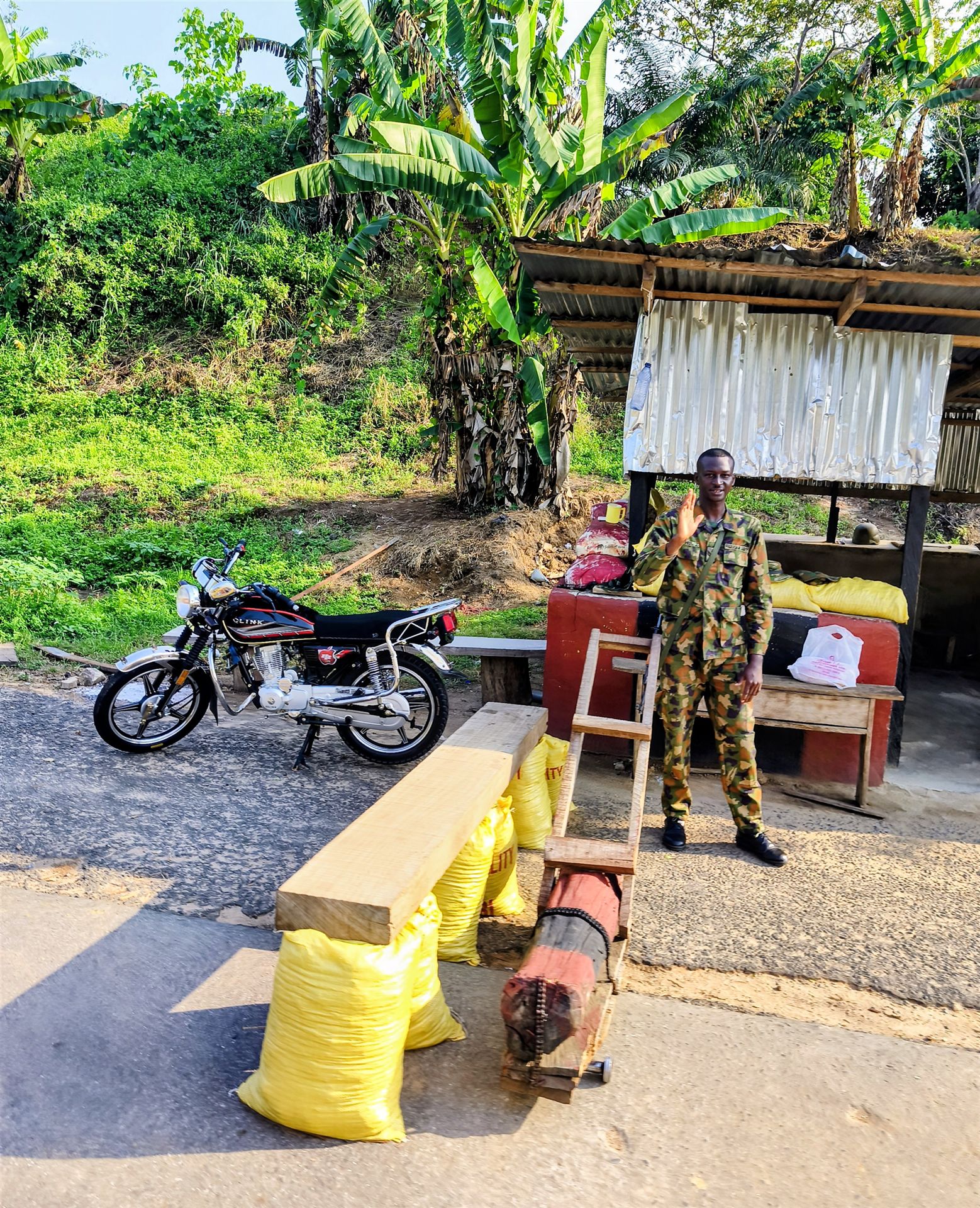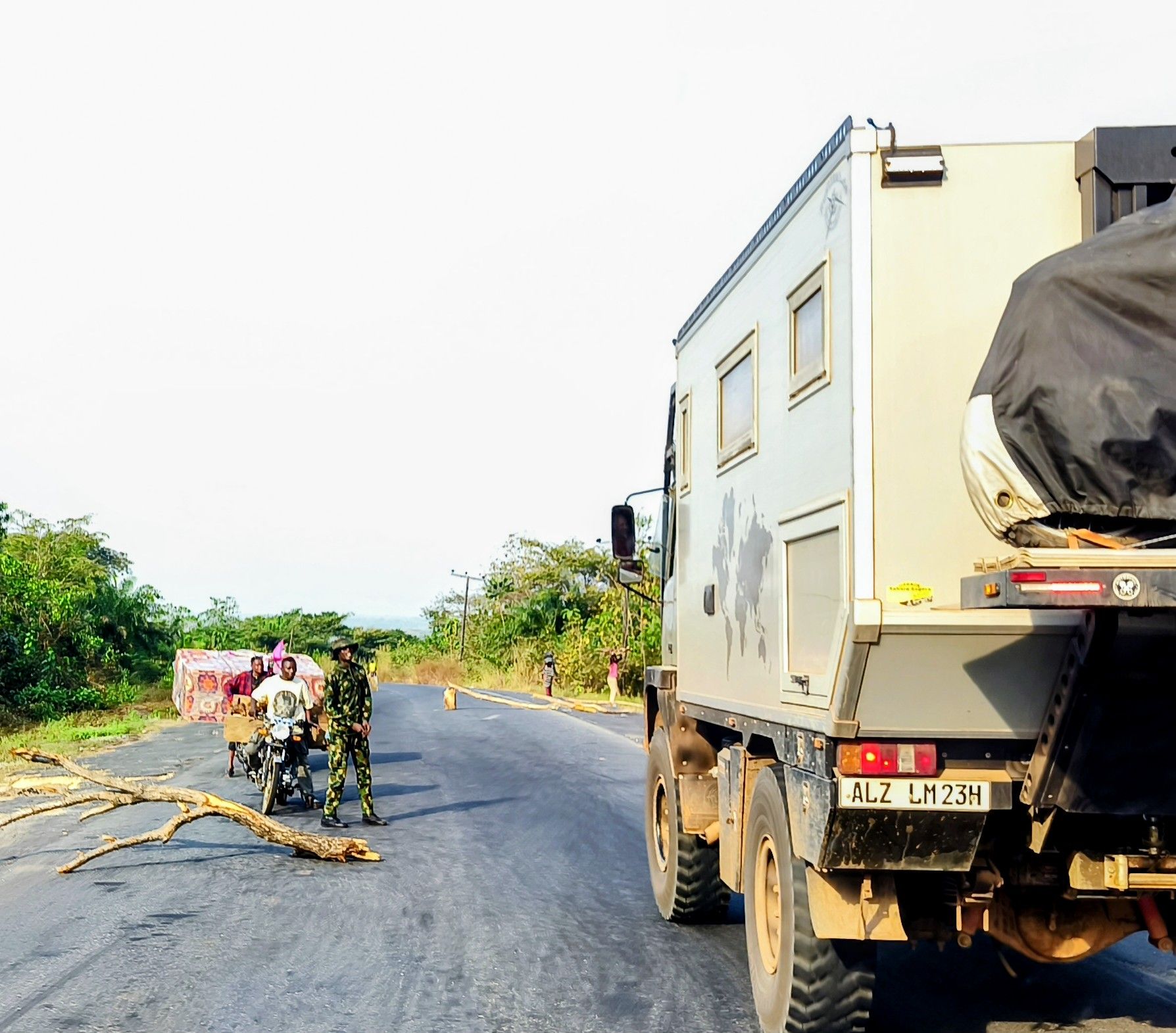 Wir machten uns also auf den Weg zum nächsten größeren Ort, in der Hoffnung, dort jemanden zu finden, der unser Carnet de Passage abstempelt. Was dann folgte, war der pure „Kontroll-Wahnsinn“ Nigerias. Ohne zu übertreiben: Sicher alle zwei bis drei Kilometer kam eine Kontrolle! Polizei, Immigration, und dann wieder eine andere Polizeieinheit, um das Ganze von vorne beginnen zu lassen.