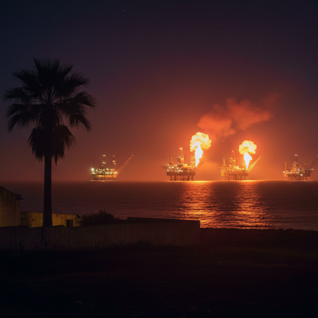 Cabinda ist eine Enklave. Eingeklemmt zwischen zwei Kongo-Ländern, politisch abgetrennt, geografisch nah – und doch eine eigene Welt. Eine Küste, an der das Meer nachts nicht dunkel wird. Weit draußen stehen sie, die Bohrplattformen. Auf dem Wasser, auf dem Land. Stahlgerüste im Ozean, aus denen Flammen schlagen, als würde die Erde selbst atmen. Gasfackeln, die den Horizont erhellen, lange bevor man sie erreicht.