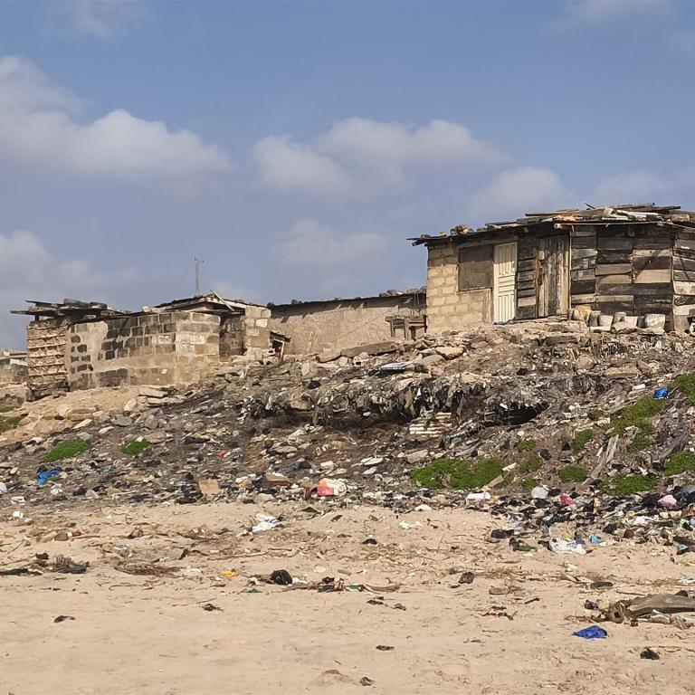 Weil es keine Müllverbrennungsanlagen gibt, landet dieser Abfall in den Kanälen. Der Regen spült ihn in die Korle-Lagune und von dort direkt in den Atlantik. Das Meer "spuckt" es dann wieder aus – genau hier, vor unsere Füße. Für die Fischer von Jamestown ist das eine Katastrophe: Sie ziehen oft Netze voller nasser, bleischwerer Jeans aus dem Wasser statt Fische.