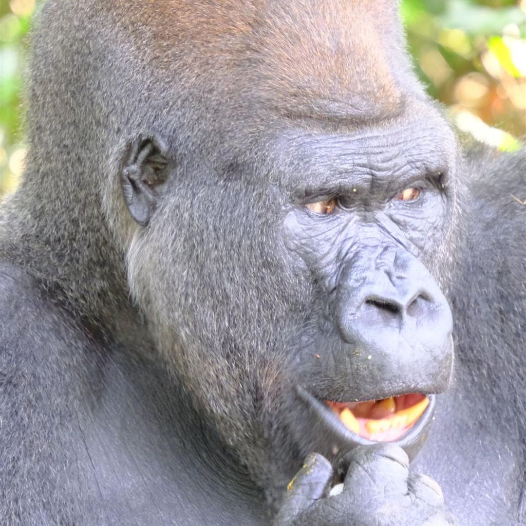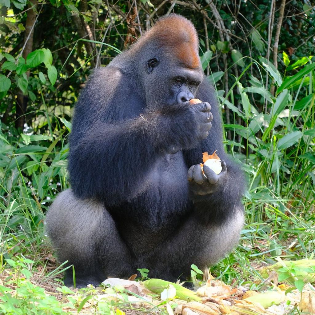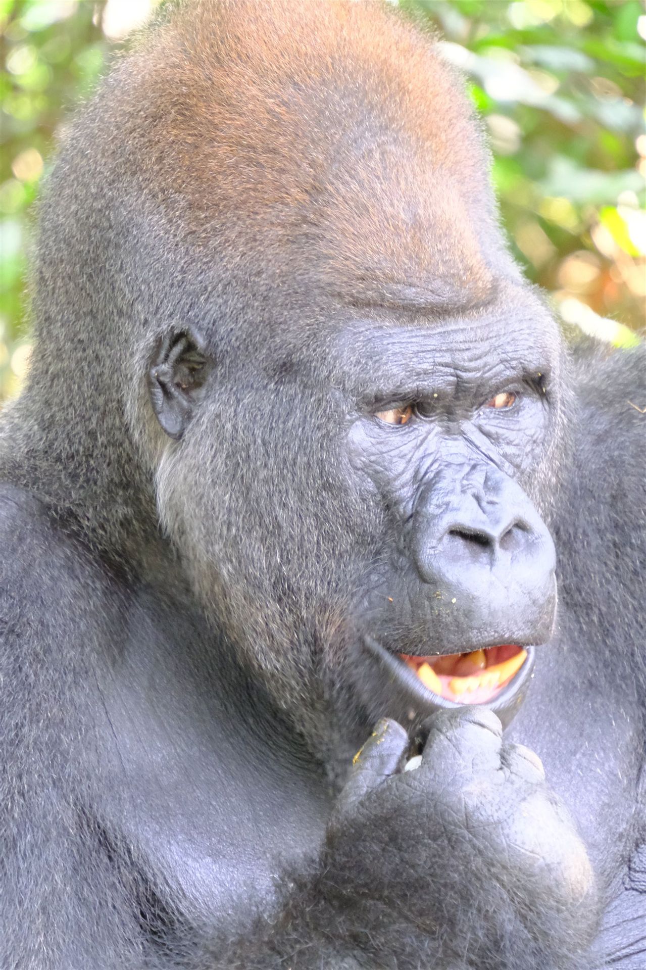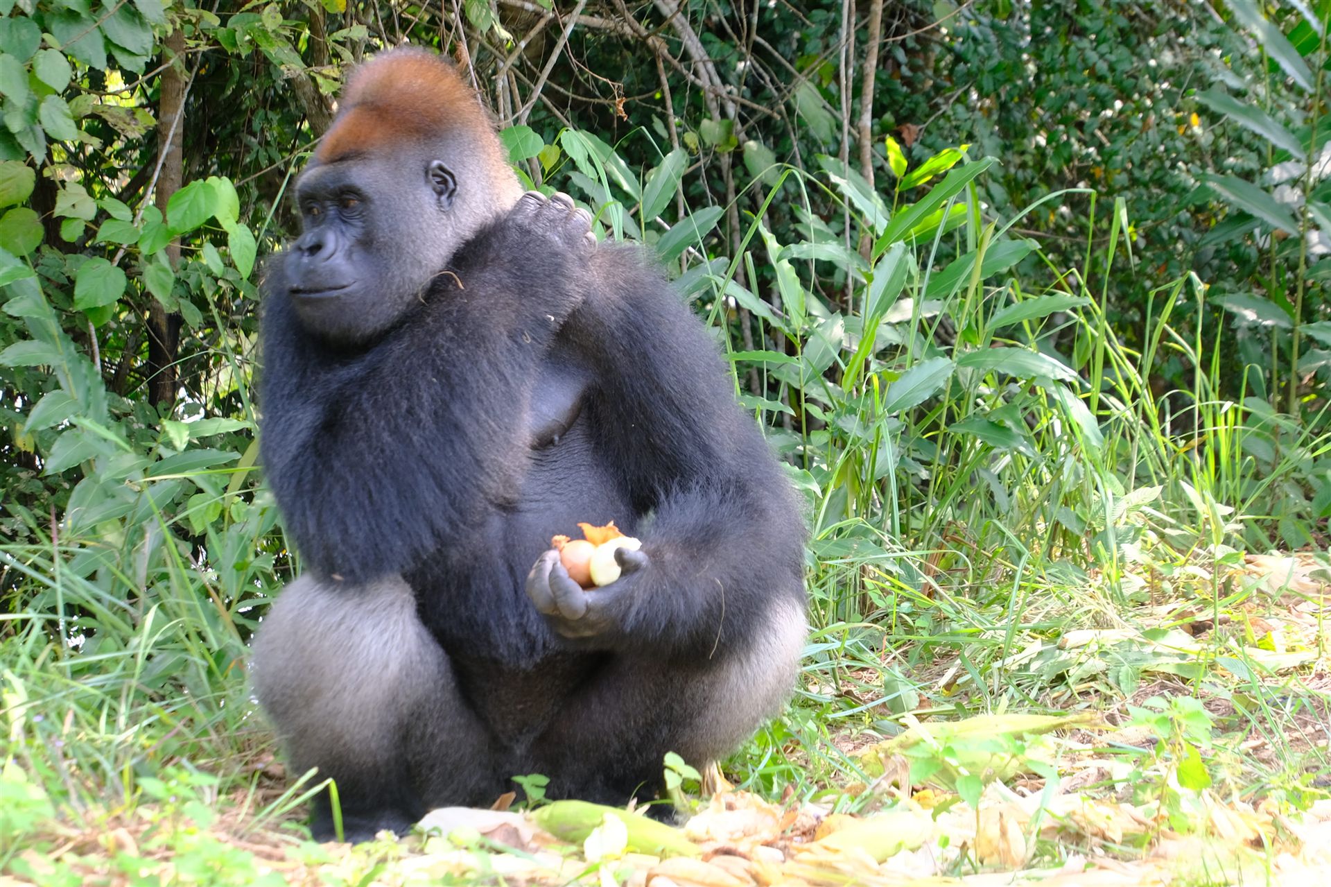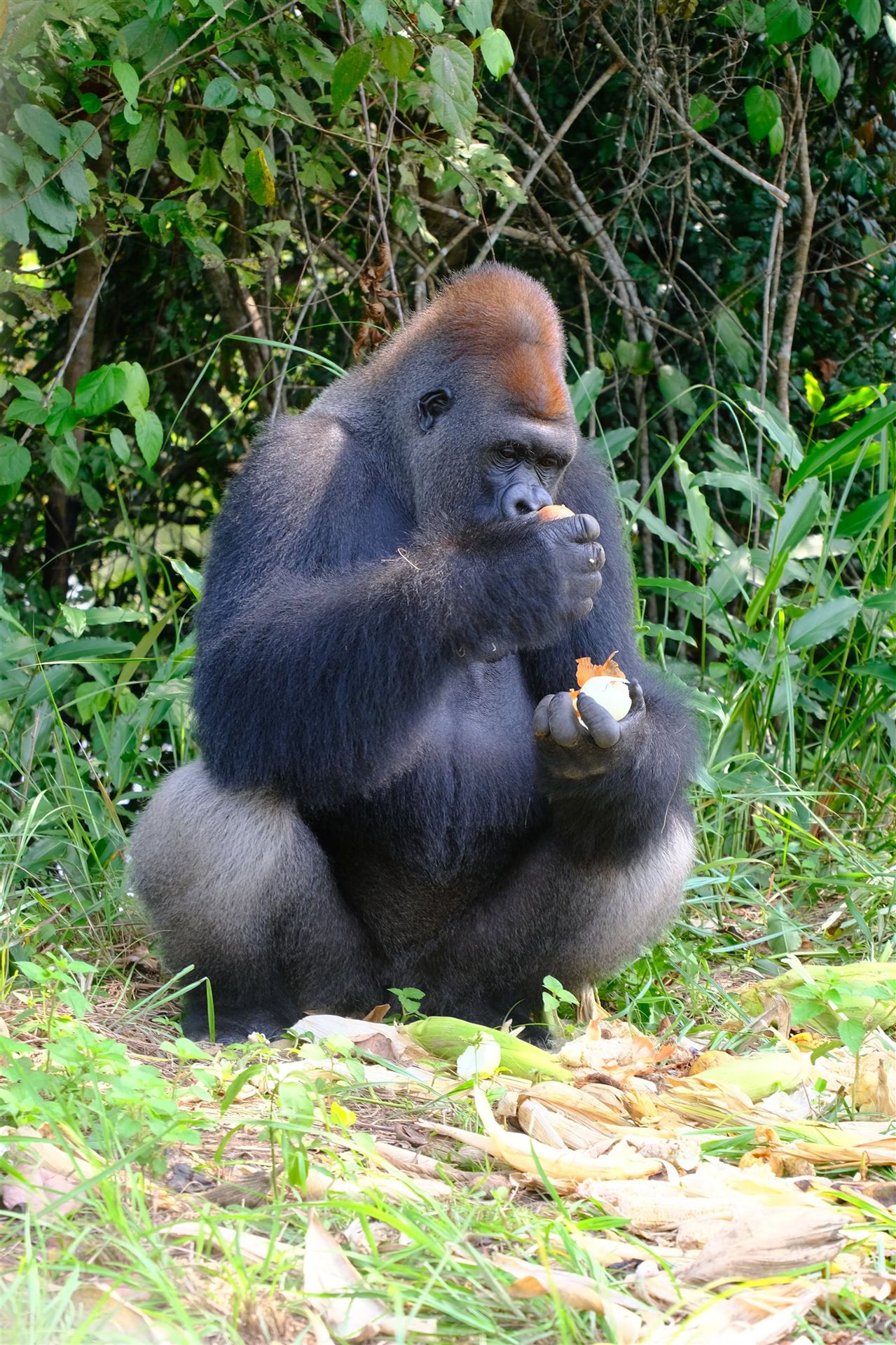 Ganz anders präsentierte sich uns ein 17-jähriger „Teenager“-Gorilla. Er freute sich sichtlich über das Futter, das ihm zugeworfen wurde. Selbst rohe Zwiebeln verschlang er mit vollem Genuss. Die Ranger erklärten uns hier die schwierige Mission des Camps: Die Tiere müssen mühsam wieder an die natürliche Nahrung des Urwaldes gewöhnt werden. Gelingt dies nicht, können sie nie ausgewildert werden und bleiben ihr Leben lang – das bis zu 70 Jahre dauern soll – auf menschliche Hilfe angewiesen.