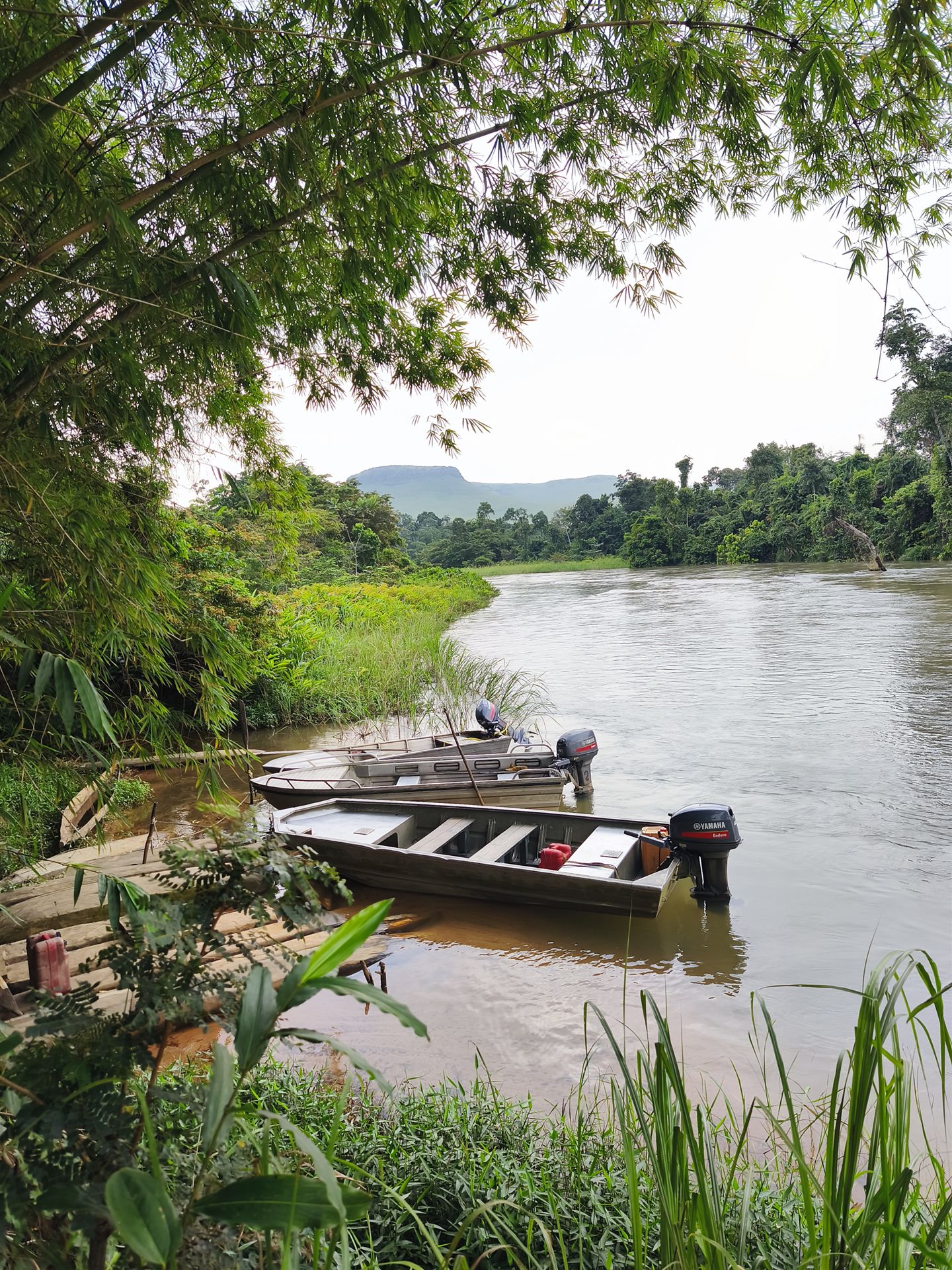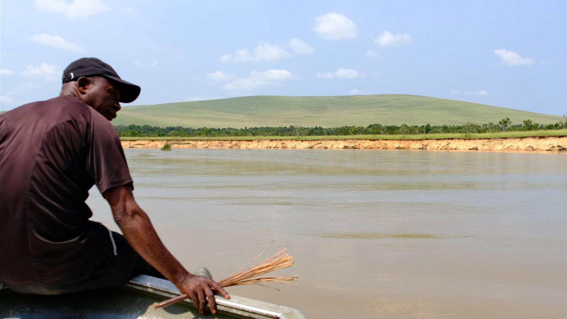 Gegen 9:30 Uhr starteten wir unser Abenteuer auf dem Wasser. Mit dem Motorboot drangen wir tief in das weitläufige Flusssystem des Léfini vor. Schon bald zeigte sich, dass dieser Fluss voller Leben steckt: Nur Augen und Ohren lugten wie kleine Periskope aus dem Wasser – Flusspferde. In den Baumkronen am Ufer herrschte ebenfalls reges Treiben, als flinke Affen neugierig auf unser Boot hinabblickten.